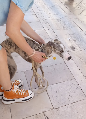 下城牆到廣場休息等團友,走主街,由主街岔出一條條直如登山道的巷弄,兩旁皆商店。不想逛街,看人也很有趣。很多人帶狗出來遛逹,我發現這裡的狗和美國常見的狗不同,譬如見到這隻臉長得像羊面,腿特別長的狗,嚇了一跳,後來才知是灰狗Greyhound。此品種跑得特別快,曾被用來賽狗取悅人類。因此活動不合現代動物權,在美國只餘六州可合法舉辦,但在英國仍受歡迎。我後來在其他城市還看到一群灰狗,大開眼界。